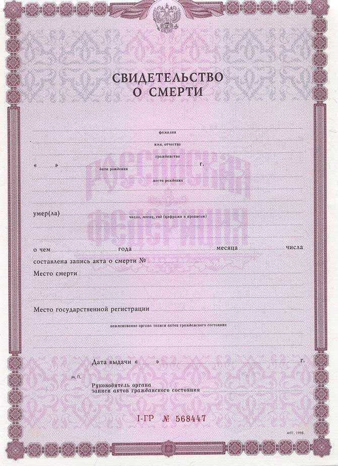 Образец свидетельства о смерти